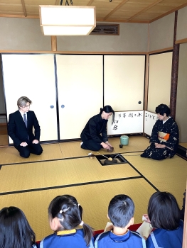 みどりこども園(福井市足羽)の年長組さんをお招きして、当校茶室にて初釜を行ないました。